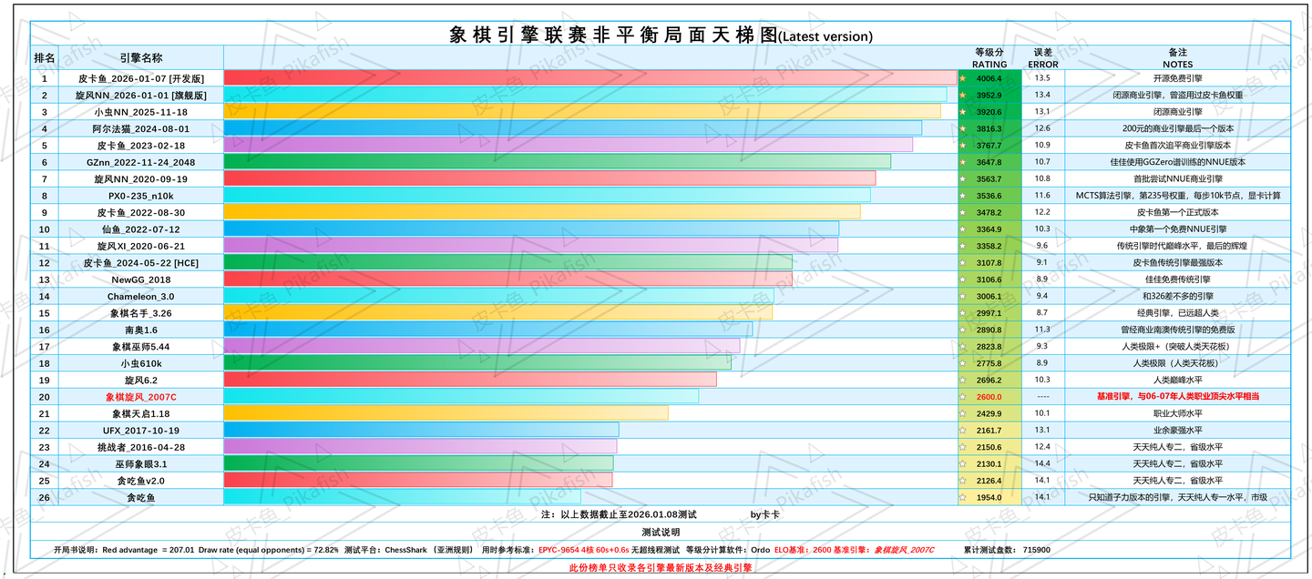 象棋引擎联赛天梯图260109(by卡卡)【转载于皮卡鱼论坛 作者卡卡 如有不妥 望告之】