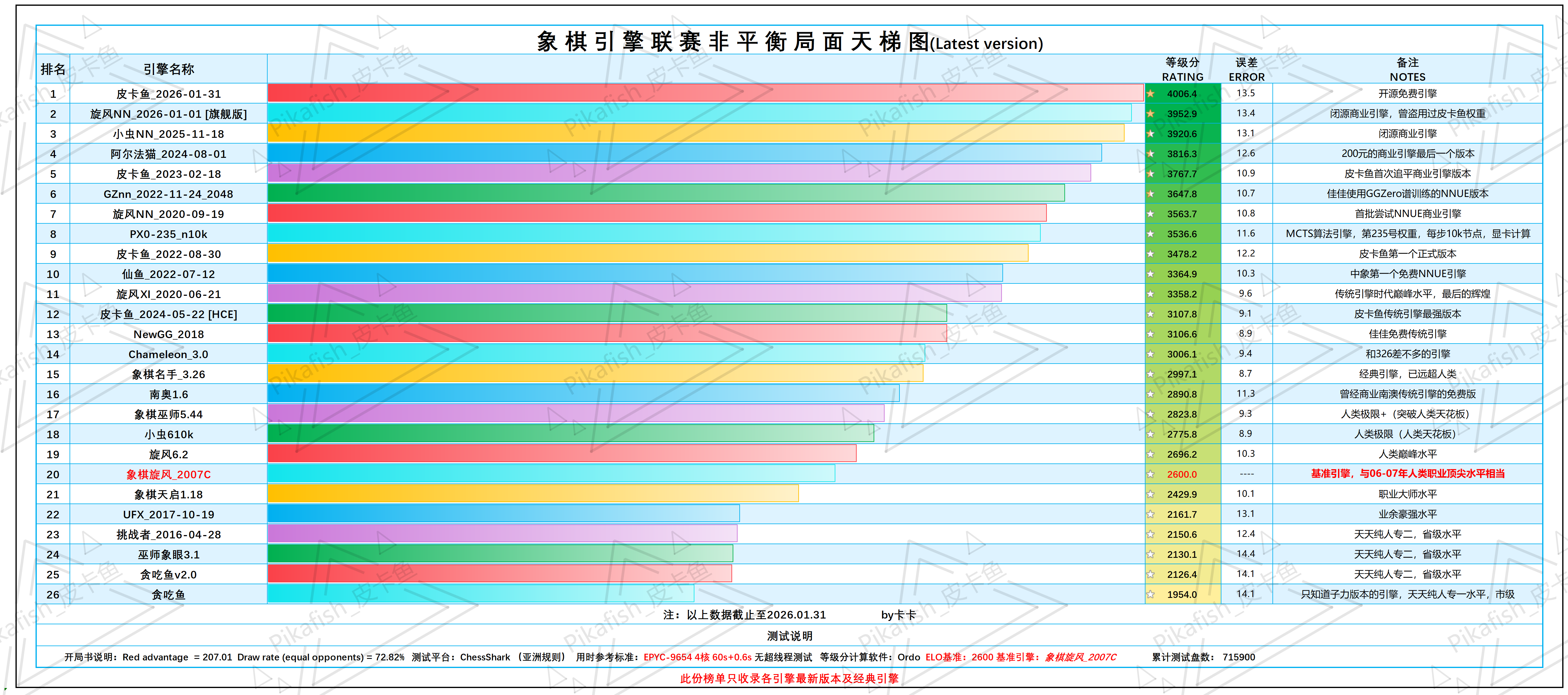 象棋引擎联赛天梯图260131(by卡卡)【转载于皮卡鱼论坛 作者卡卡 如有不妥 望告之】